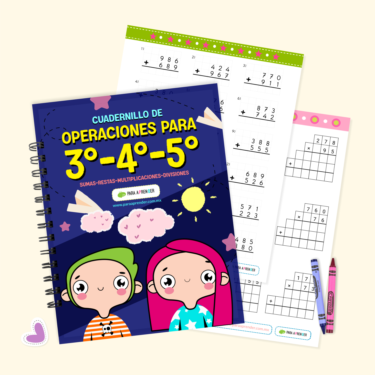 👉Contiene: 116 páginas que incluyen sumas, restas, multiplicaciones y divisiones para niños de 3° a 5° de Primaria.