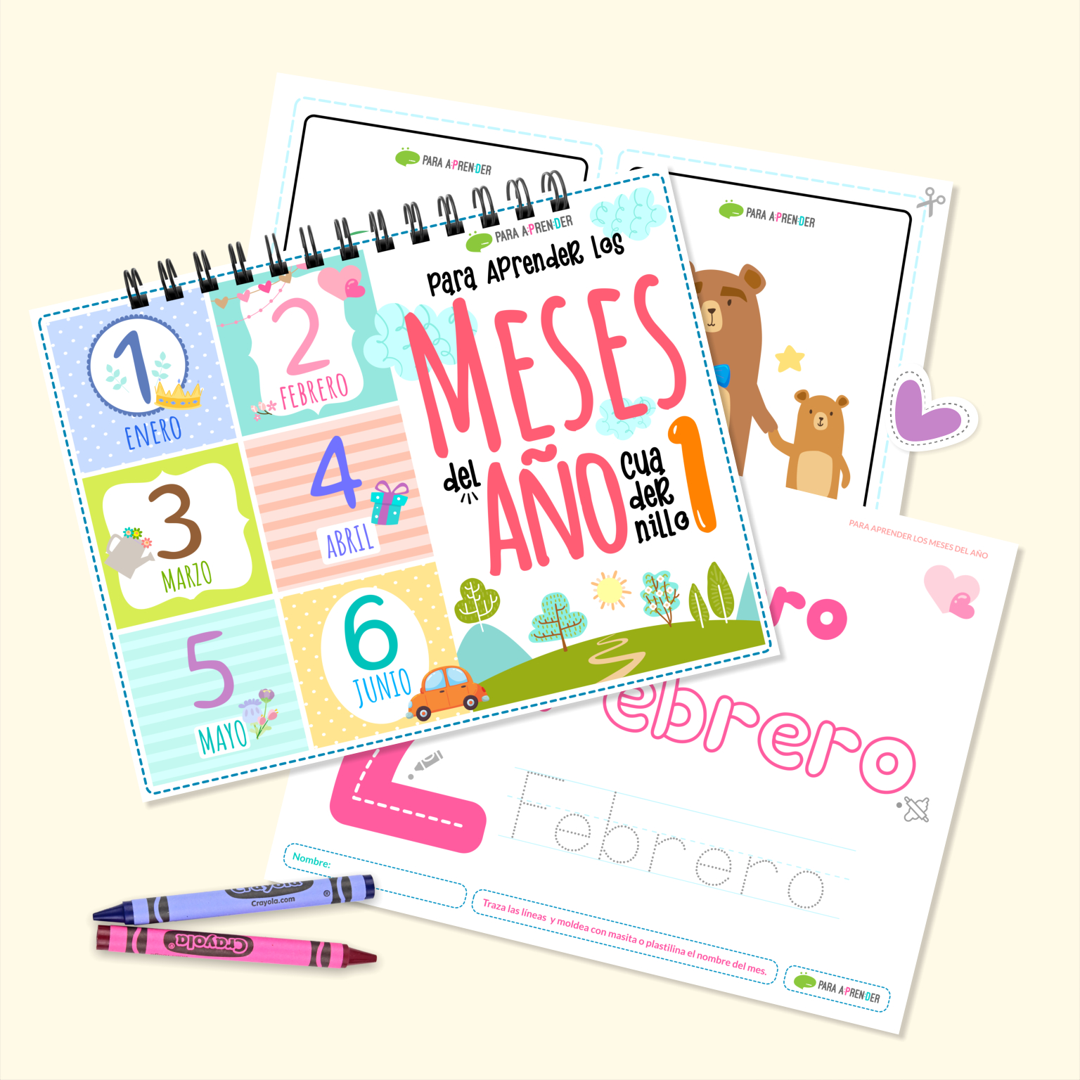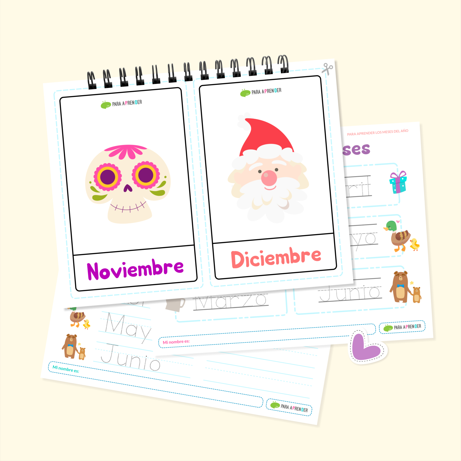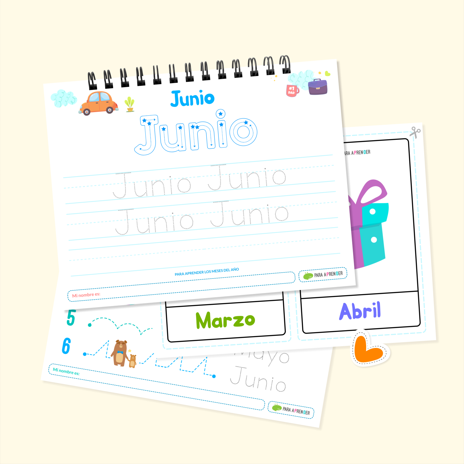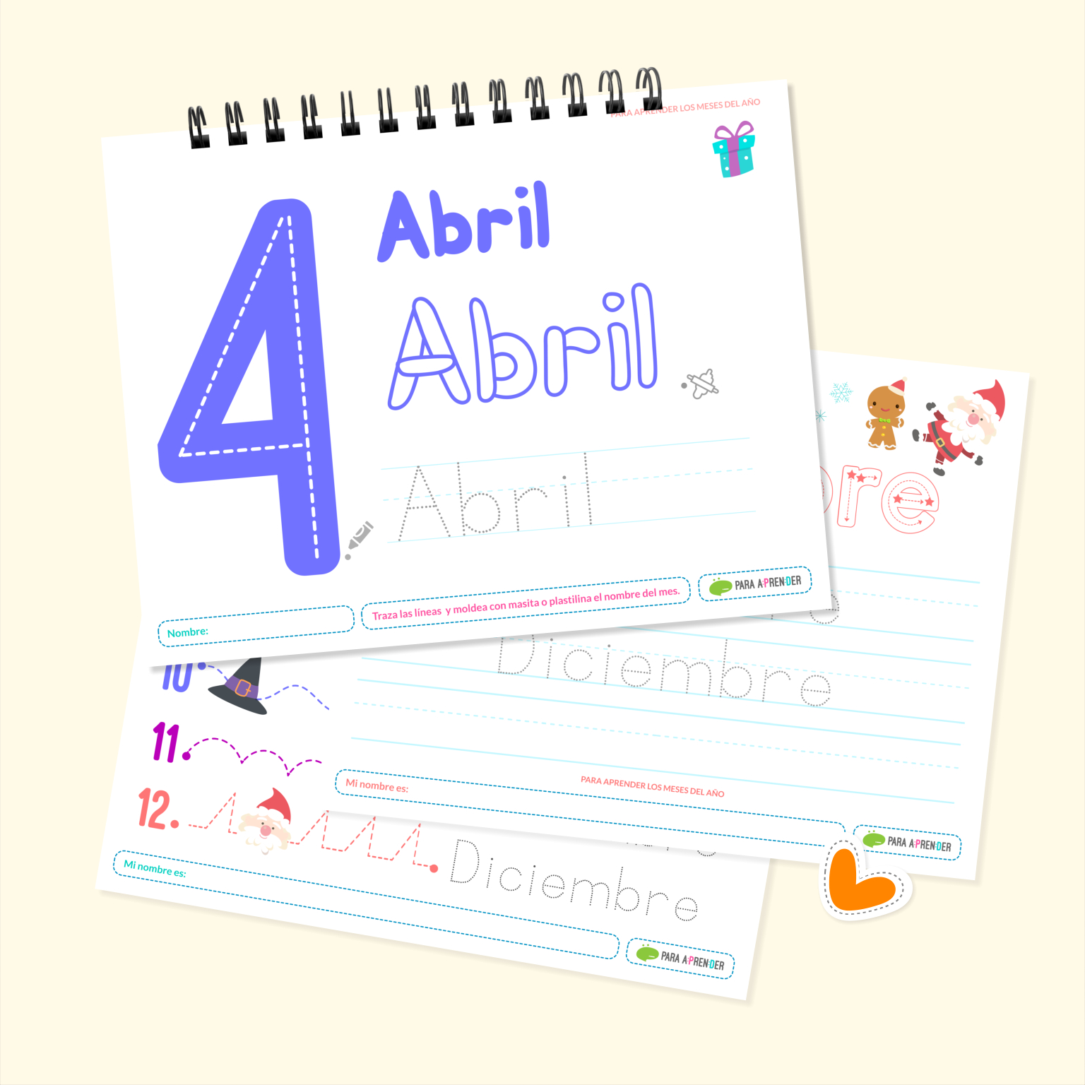 ✏️12 Plantillas para moldear y trazar los meses (1 por mes).