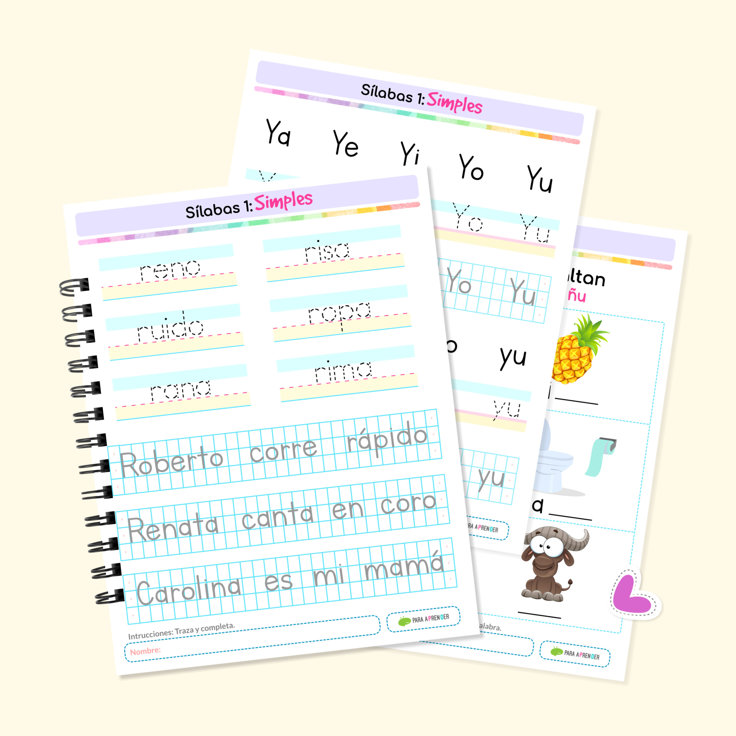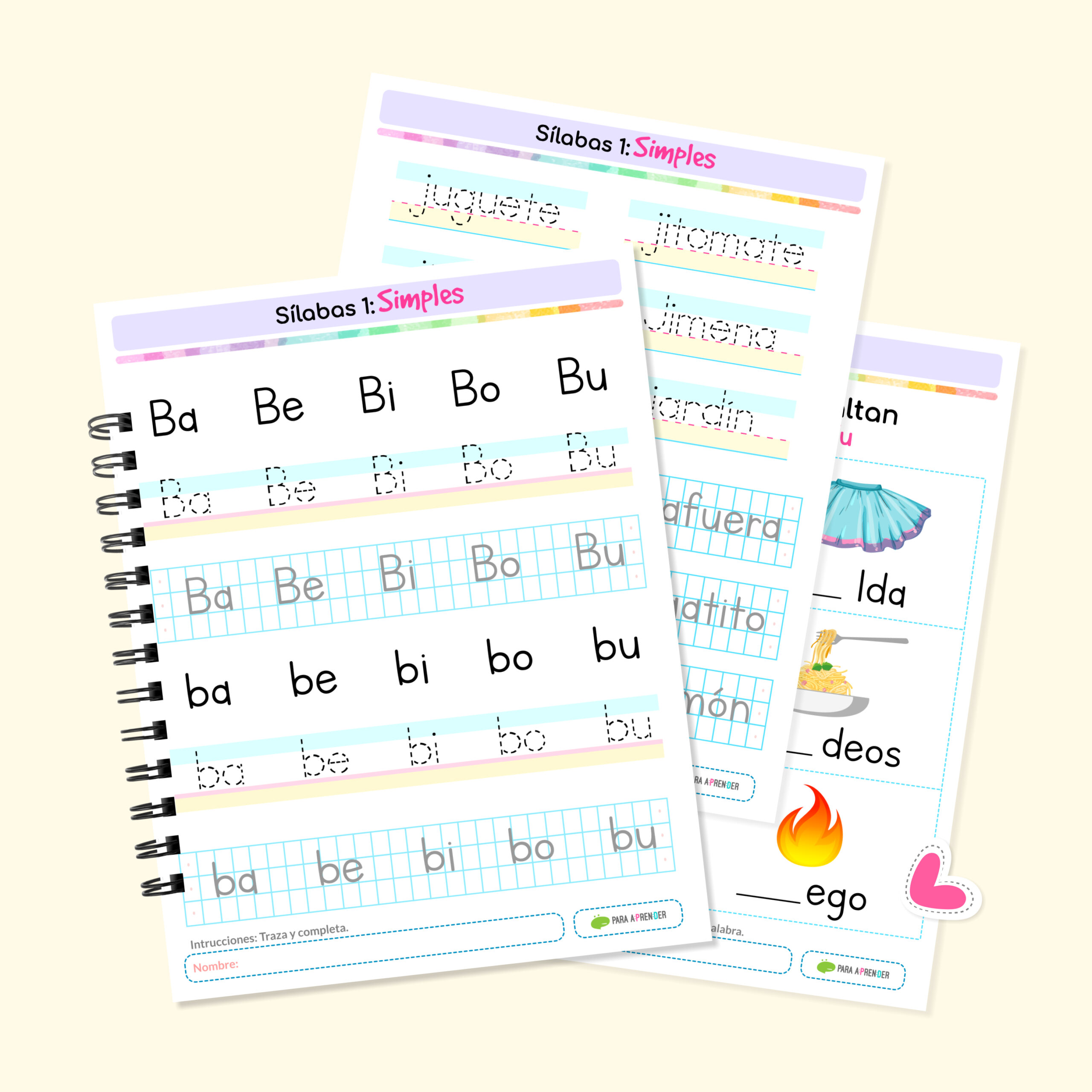 ✏️Silabario Sílabas simples para aprender a leer. Cuadernillo con 108 páginas a color.