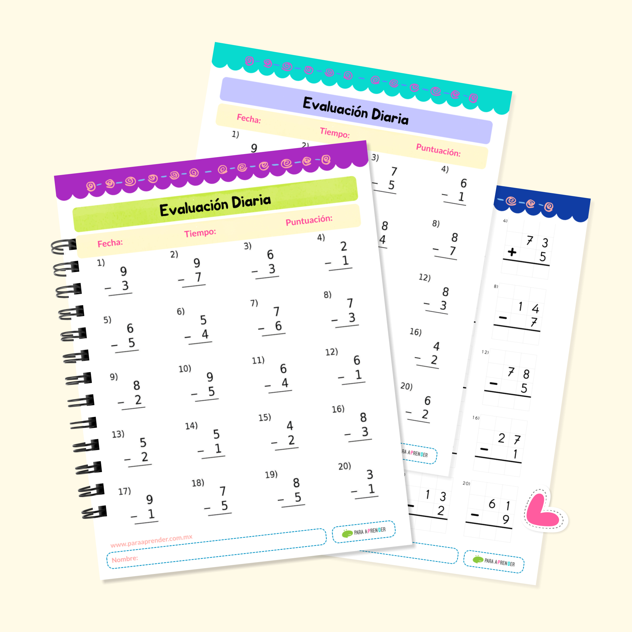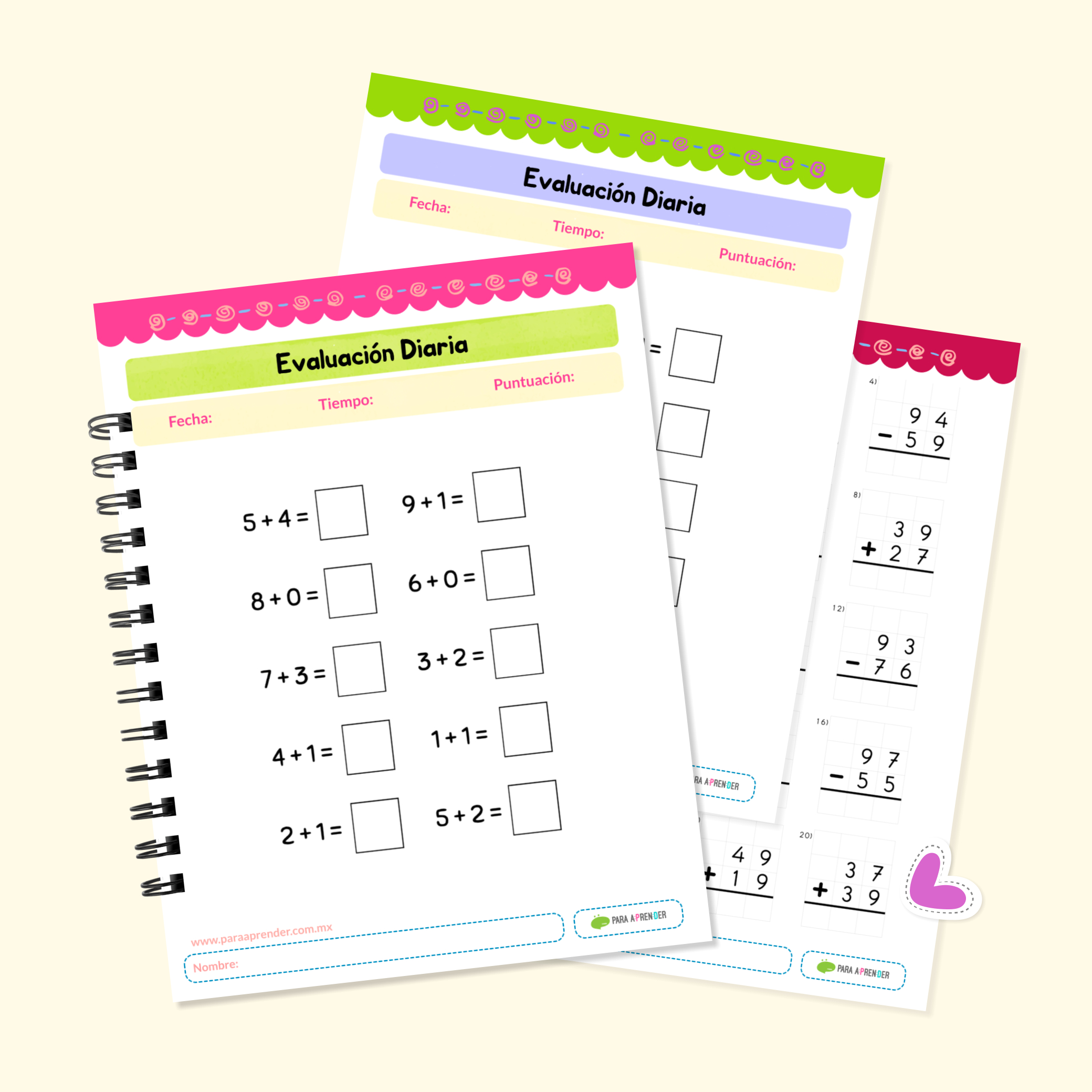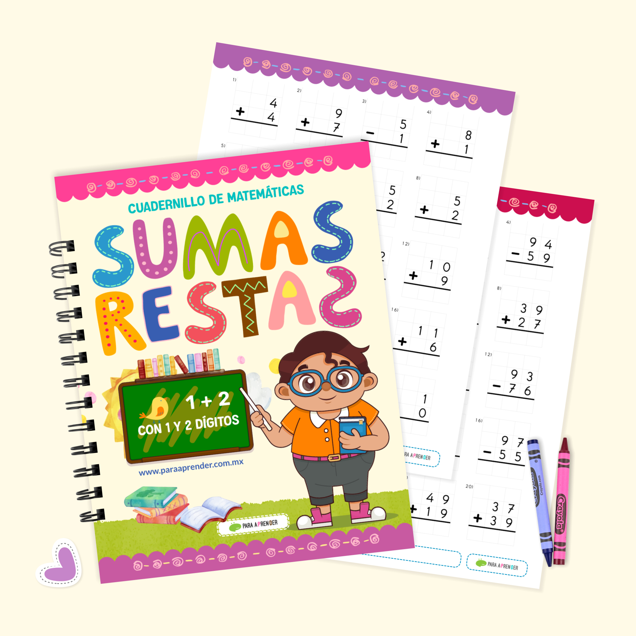 😊Sumas y Restas para niños de Preescolar, Primer y Segundo Grado de Primaria. Cuadernillo con 308 páginas a color.